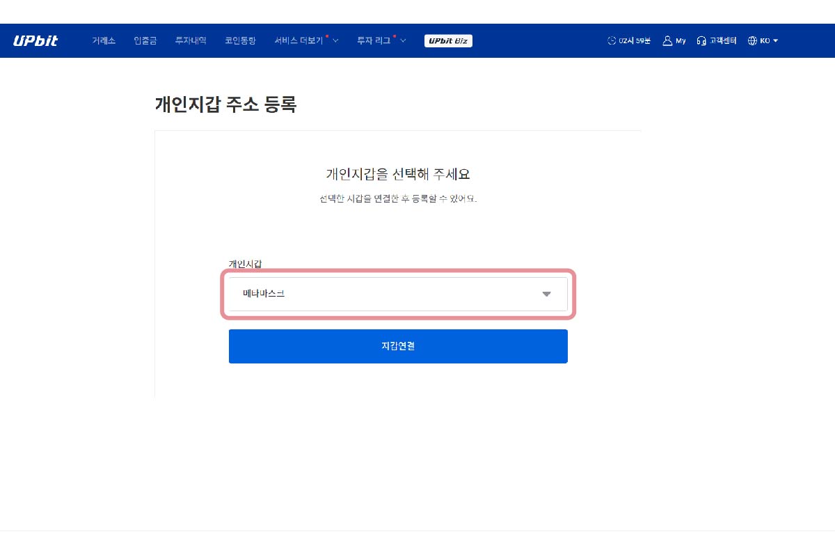 3. 개인지갑 주소 등록 화면에서 메타마스크를 선택.