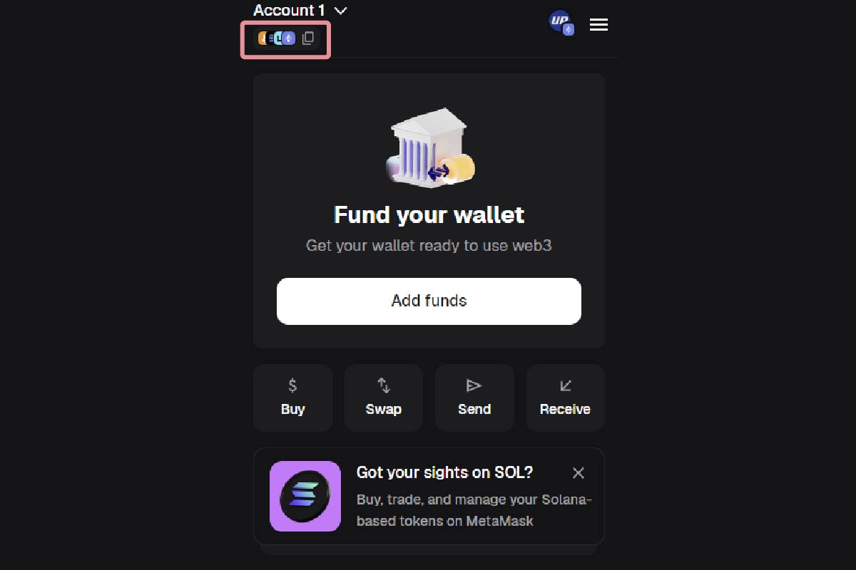 5. 메타마스크 상단에서 본인의 지갑 주소를 확인하고